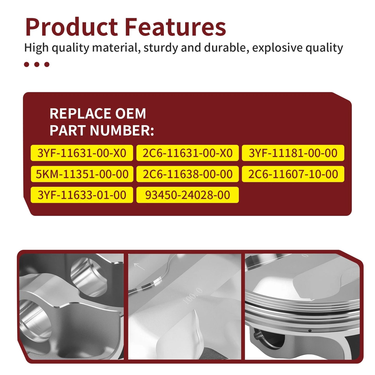 - Enhanced durability with a forged piston for increased performance