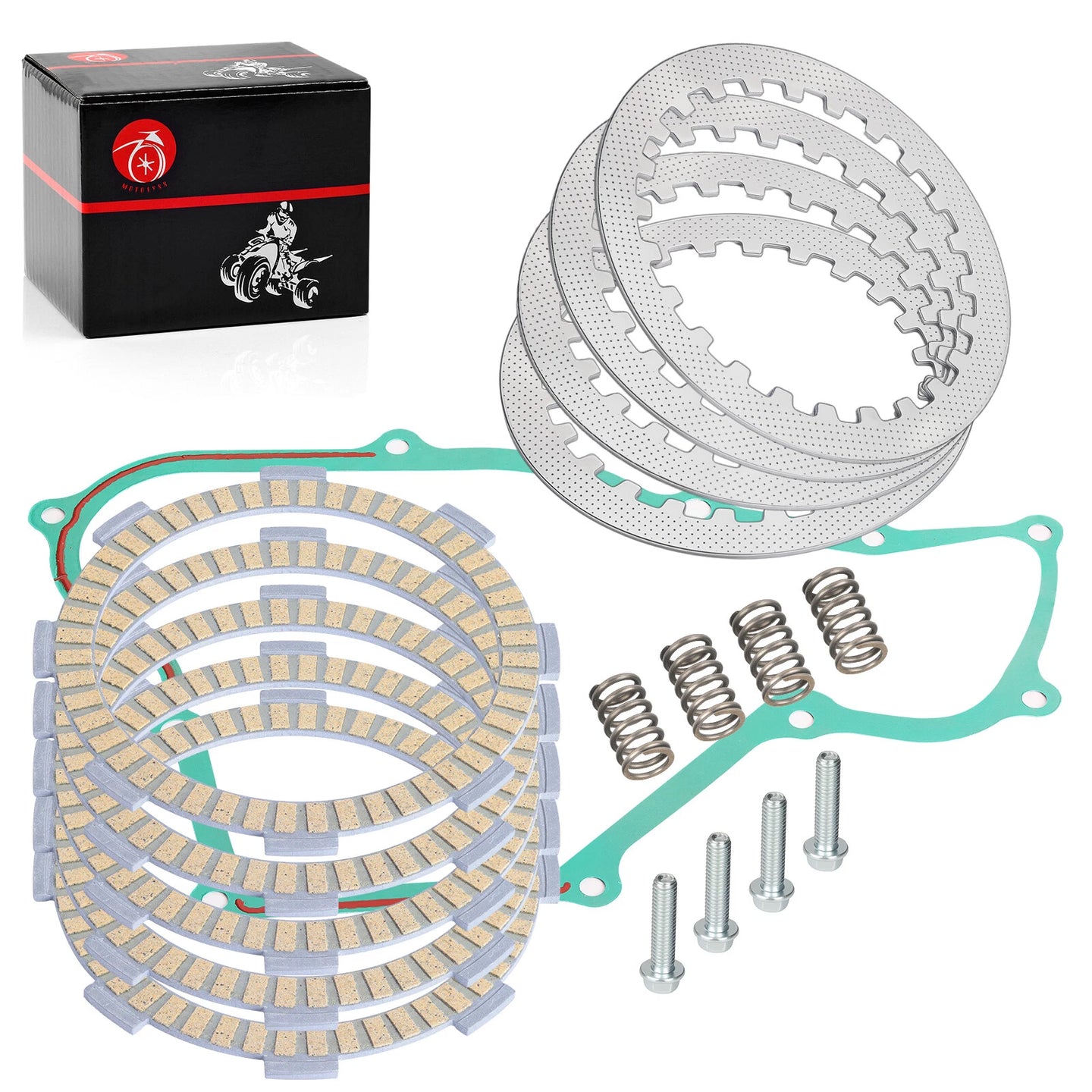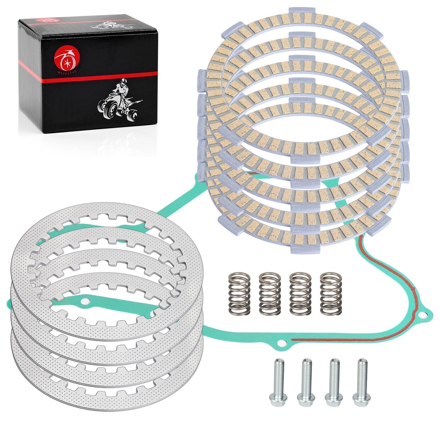 Includes: Clutch friction plates, steel plates, gasket, and bolts.