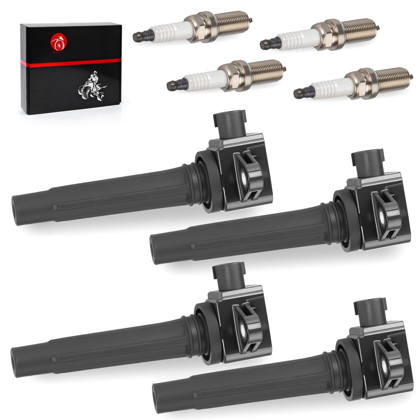 Includes: 4 ignition stick coils, 4 spark plugs
