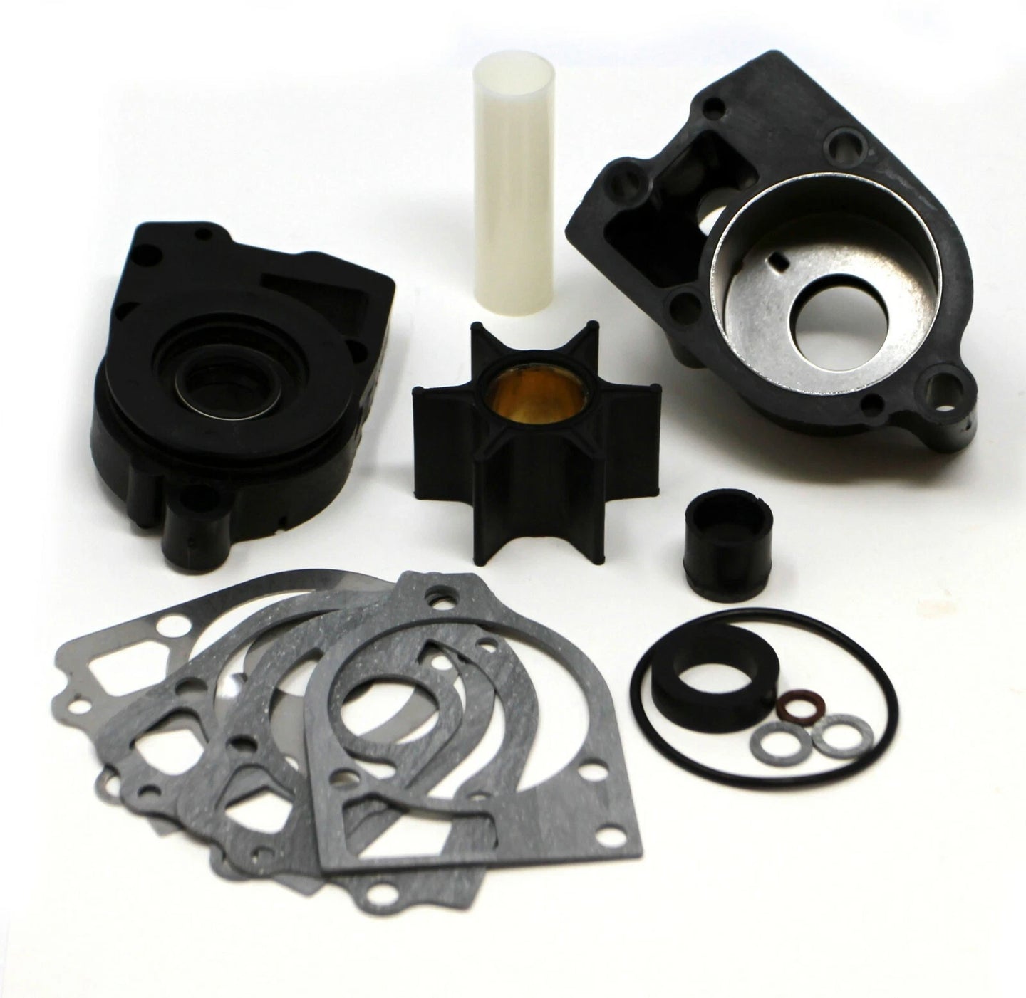 Includes: Water pump housing, two impellers, gaskets, and installation hardware.